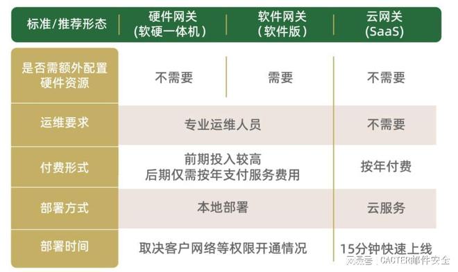 除了行业特性,部署方式也是方案的关键考量。CACTER 提供三种网关形态,可根据企业现有条件灵活选择: