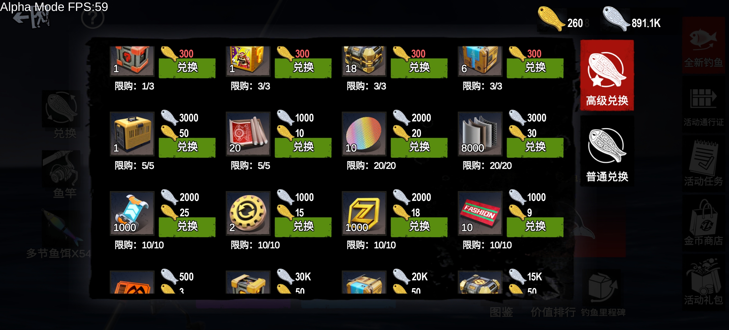 钓起鱼后将自动转为银鳞币,其中橙色和红色鱼还将额外获得金鳞币,使用活动道具可在兑换栏兑换众多奖励,请合理安排数量,不至于浪费。