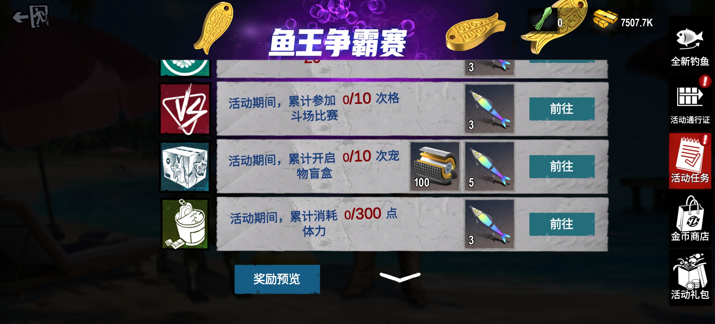 同时,联盟会记录角色钓起鱼的价值,按最大值计入排行,本次活动结束后,按照价值排行发放排名奖励。钓鱼次数不再额外增加价值,所以可能会有同分,按照时间先后排序。